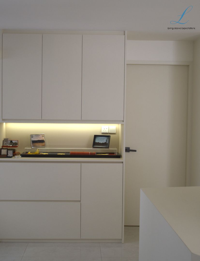 Designed to create a sense of openness while maintaining warmth and comfort. By reconfiguring the layout, the living, dining, and kitchen areas were seamlessly connected to improve flow and natural light penetration. Soft neutral finishes, clean-lined carpentry, and subtle curves were used to create a calm visual language throughout the space. Integrated storage solutions help maintain a clutter-free environment, allowing the home to feel spacious, organised, and effortless for daily living.